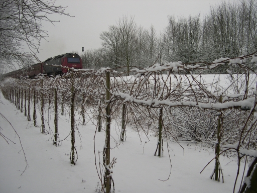 Arbejdet i vinmarken begrænser sig først på vinteren til nedtagning af net og klipning af stiklinger. Sidst i marts måned beskærer vi vinstokkene, et arbejde vi hidtil har kunnet klare på en weekend af 4 personer. Hertil skal så lægges yderligere en weekend til oprydning og afbrænding af det afklippede.