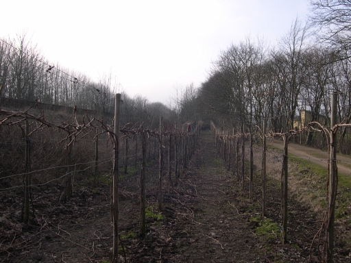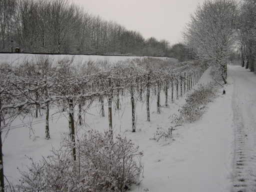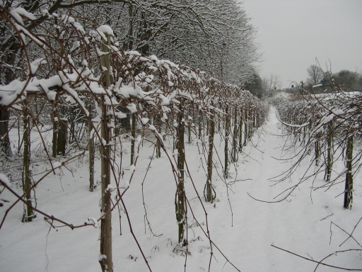 Mere sne. Her ses opbygningen af vinstokkene tydeligt.